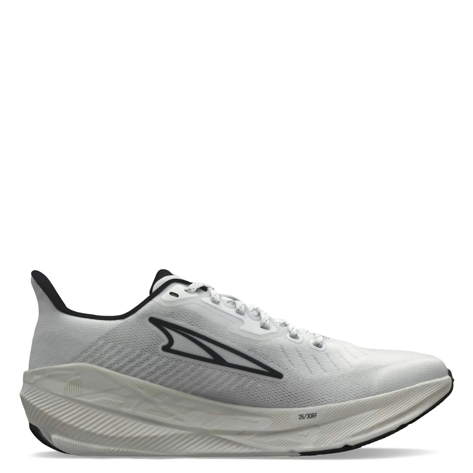 - Rubber outsole with a rocker shape that is designed to give the feeling of being propelled forward with each step and provides an efficient toe-off without taking away from your natural stride