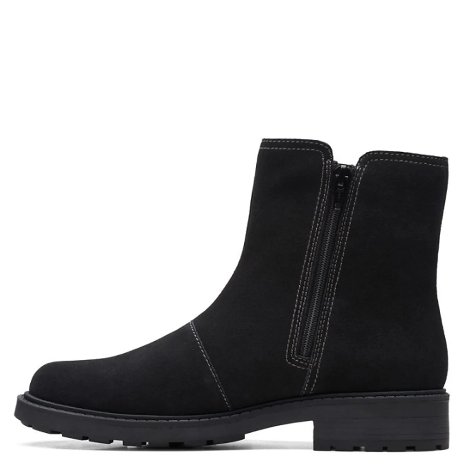 Women’s Clarks, Opal Sky Boot. Step out in style with the Opal Sky boot from Clarks. The beautifully crafted suede and knit upper features decorative stitching for added interest.