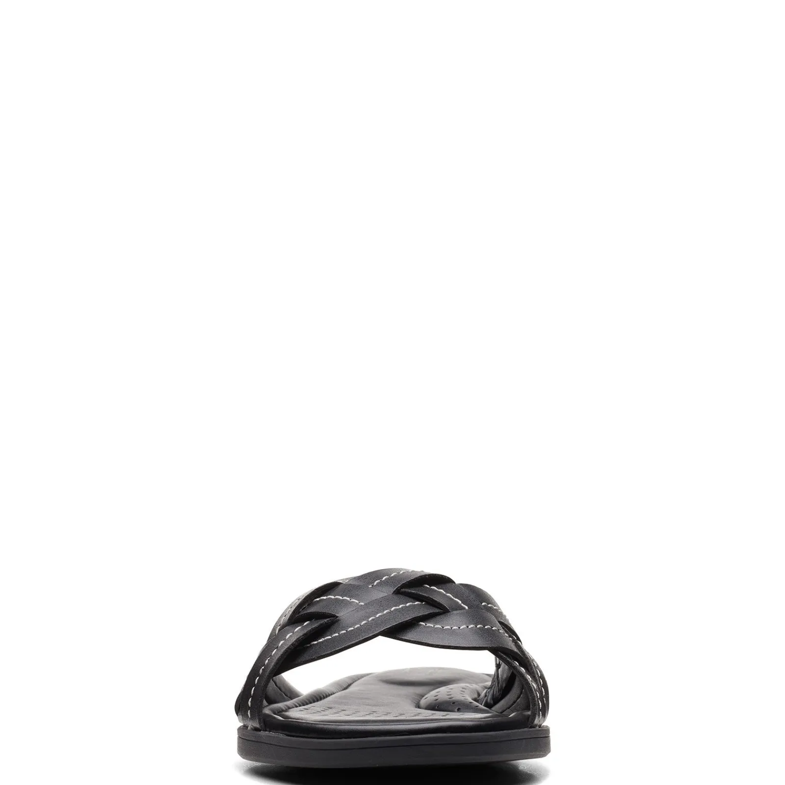 Women’s Clarks, Reyna Weave Sandal. These pretty slides feature Cushion Soft technology with OrthoLite footbed for total comfort! You will love the super soft, foot flattering upper design on this low heel sandal.