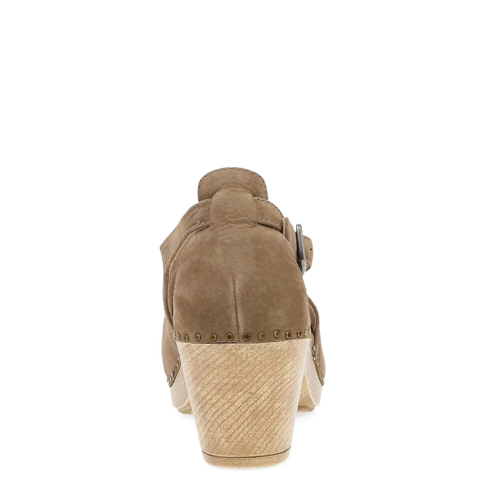 Combine comfort and style with the Sassy Clog from Dansko. This women’s clog features a burnished leather or suede upper, adjustable ankle strap, stapled construction and nailhead studded side detail.
