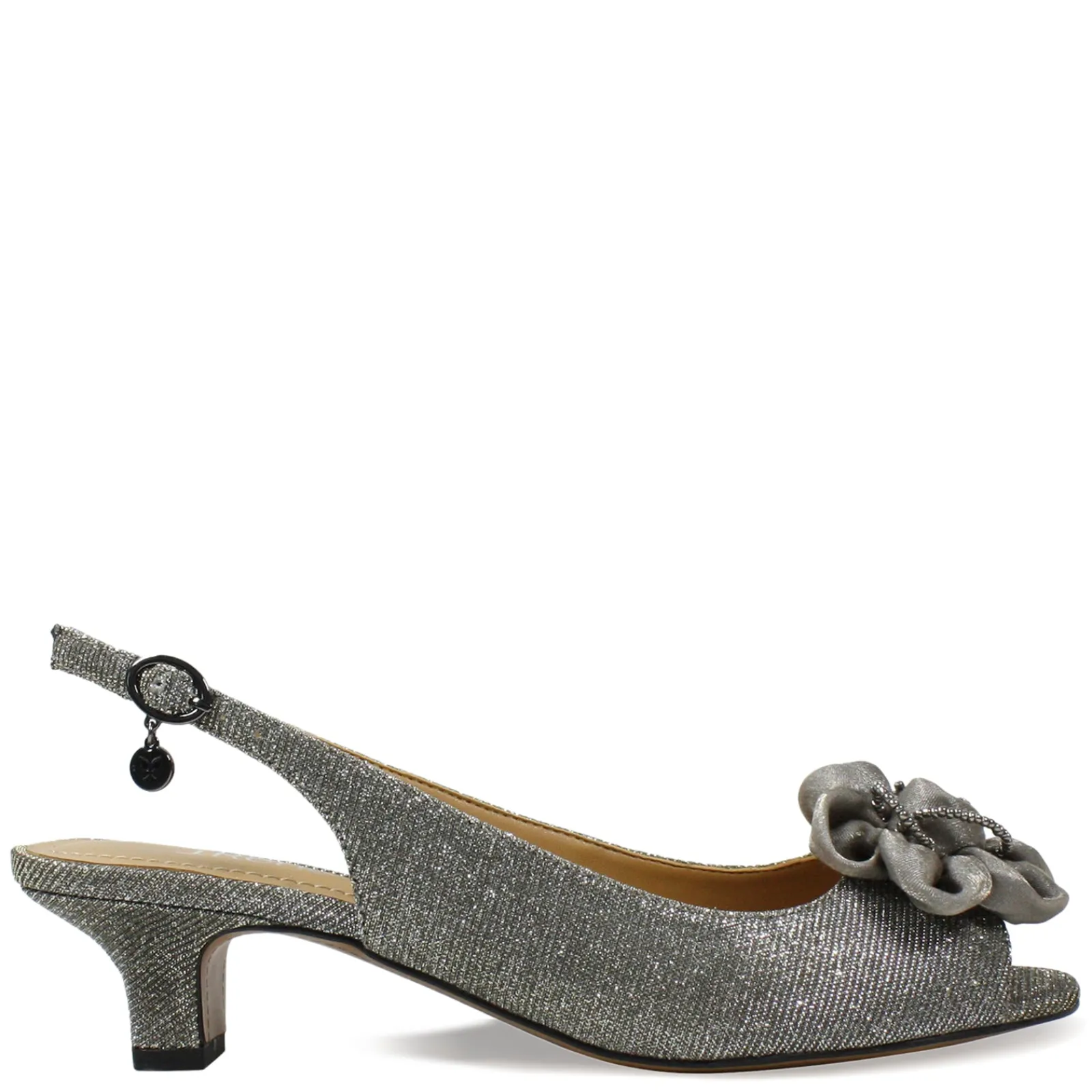 Women’s J Renee, Leonelle Sandal. Step out in style to any special event with the J. Renee Leonelle Sandals This dressy fabric low slingback features a memory foam insole for added cushion and comfort, so you’ll feel beautiful and comfortable all day.