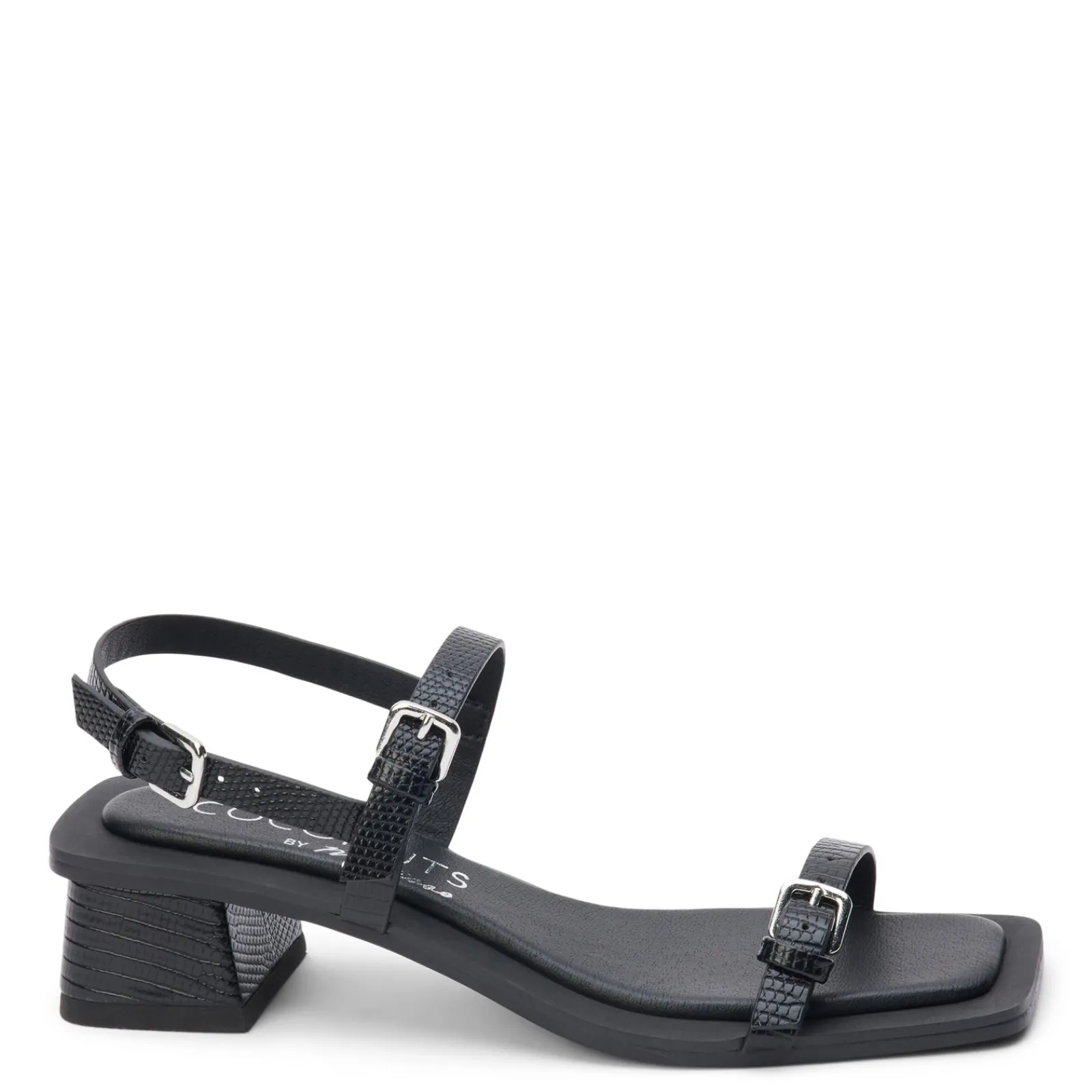 - Flexible manmade sole with a low block heel