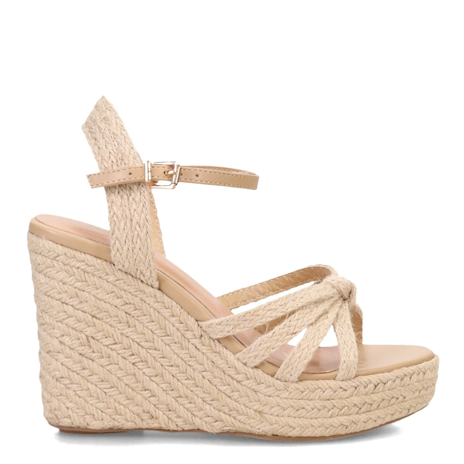 Ride high in these strappy platform sandals by MIA! These woven jute fabric espadrille style sandals will give you a fresh look for spring.
