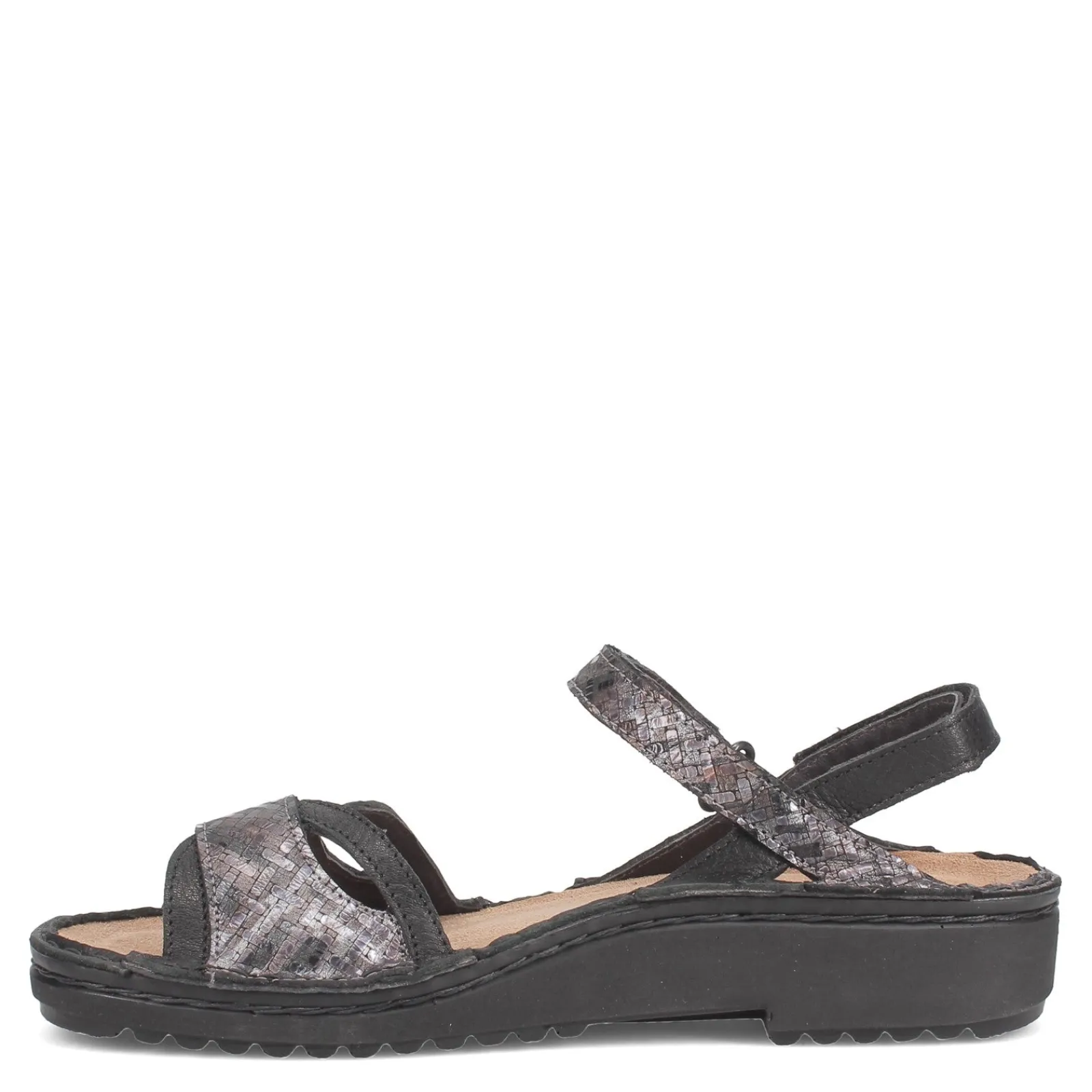 - Naot’s removable, suede wrapped anatomic cork and latex footbed is molds to the shape of the foot