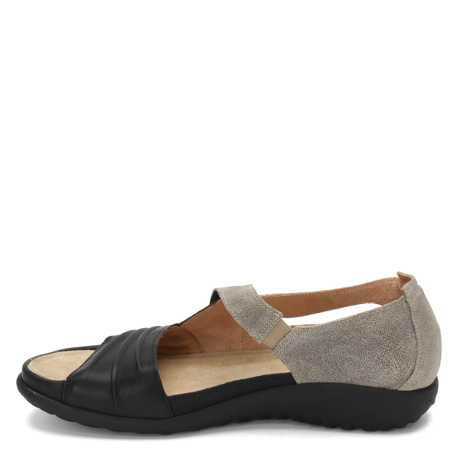 Women’s Naot, Papaki Sandal. Add a touch of style to any outfit with these low heel sandals. This foot flattering design features an asymmetrical strap, pleated accents and a closed back design.