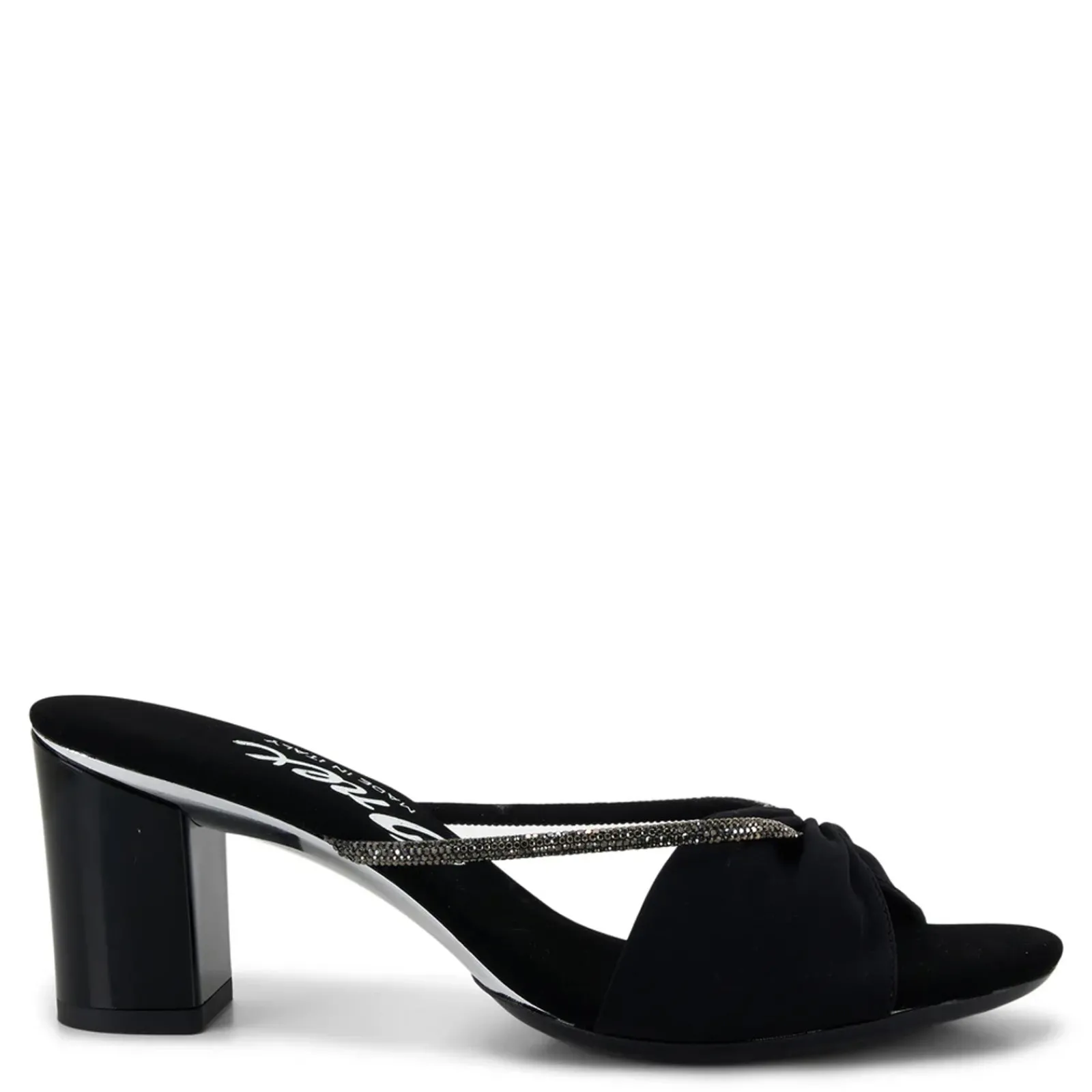 The Onex Astoria Sandals bring a touch of elegance with their pleated soft elastic upper, enhanced by a chic row of shimmering rhinestones on the straps. Designed with metallic midsole trim for added pizzazz, these sandals offer both sophistication and comfort for any occasion.