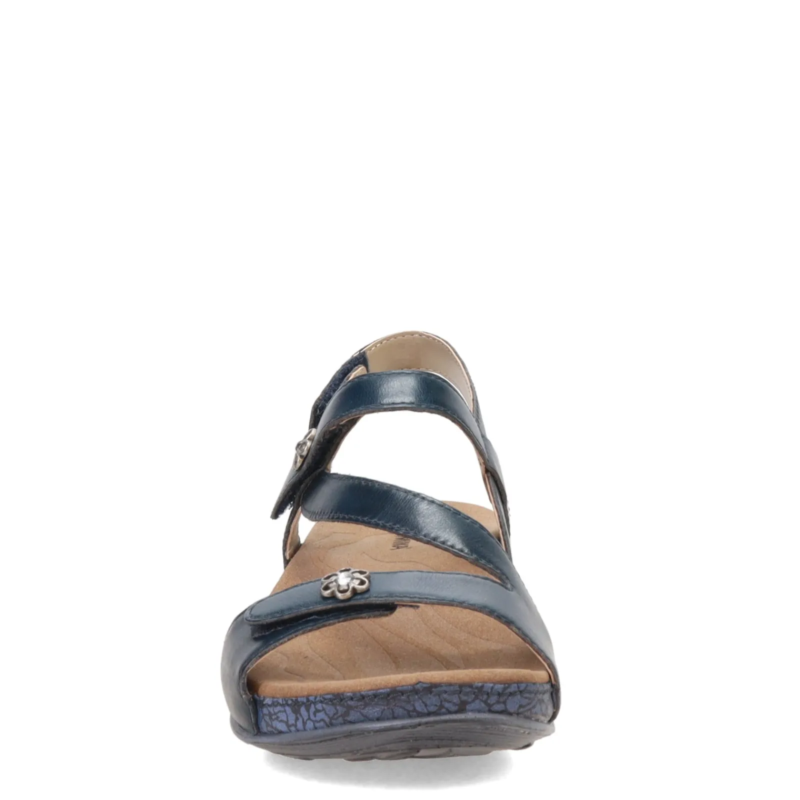 Women’s Romika, Fidschi 54 Sandal. Enjoy the warmer weather in these fashionable low heel sandals. This feminine design features a strappy leather upper with printed midsole and decorative floral button accents.