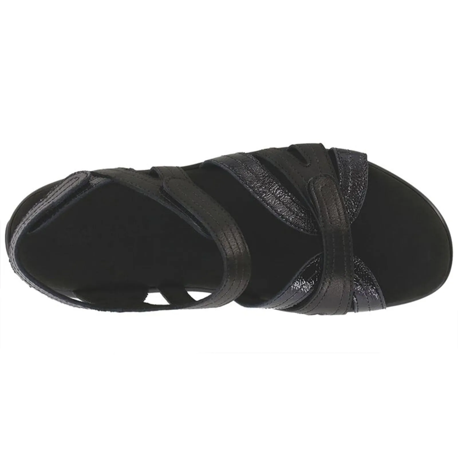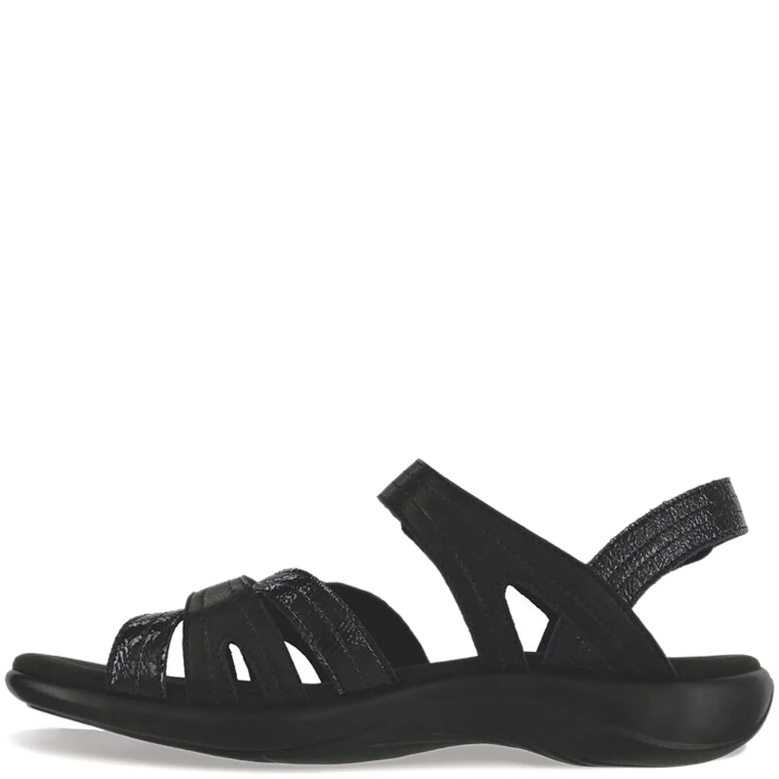 Women’s SAS, Pier Sandal. These women’s sandals are designed with a hook-and-loop closure that adjusts to provide a custom fit. A cushioned insole contours to your foot and provides all-day support, while the polyurethane outsole gives reliable footing.