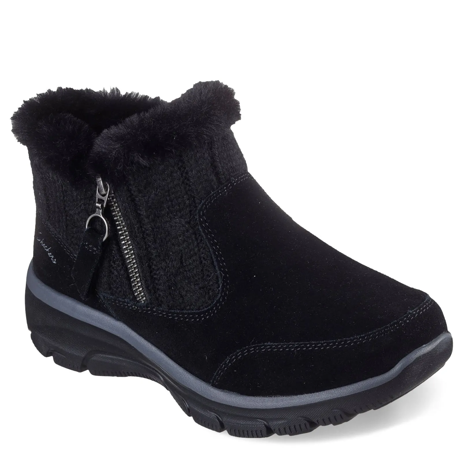 Keep cozy all winter with the Skechers Relaxed Fit�: Easy Going – Cozy Inn boots, designed to keep you warm and stylish. Featuring a water- and stain-resistant 3M Scotchgard suede upper, a sweater-knit trim, and plush faux-fur lining, these zip-up booties offer a snug fit with the added comfort of an Air-Cooled Memory Foam insole.