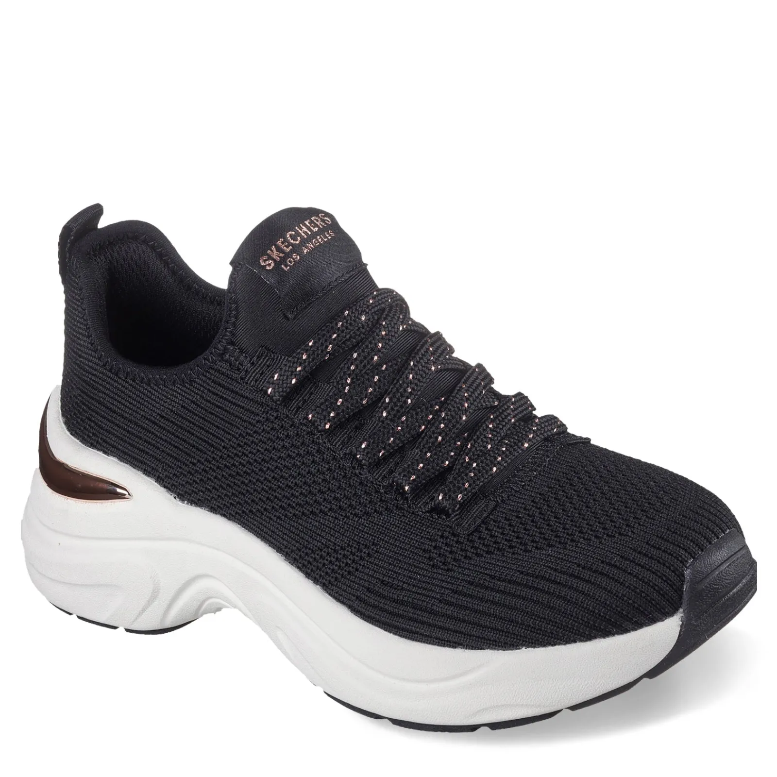 Blend style and comfort seamlessly with the Skechers Hazel – Pretty Knitty sneaker, showcasing a laced pull-on engineered knit upper with chic metallic trim details. The cushioned Skechers Air-Cooled Memory Foam insole ensures a cool and comfortable stride all day long.