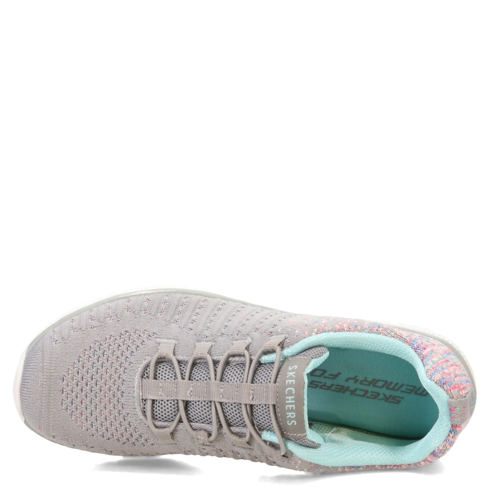 Women’s Skechers, Virtue Sneaker – Wide Width. Skechers Virtue sneaker is a sporty slip-on with an engineered knit upper, stretch lace front and cushioned memory foam insole. Pair with your favorite jeans or leggings for an easy everyday look thats ready to take on the day.