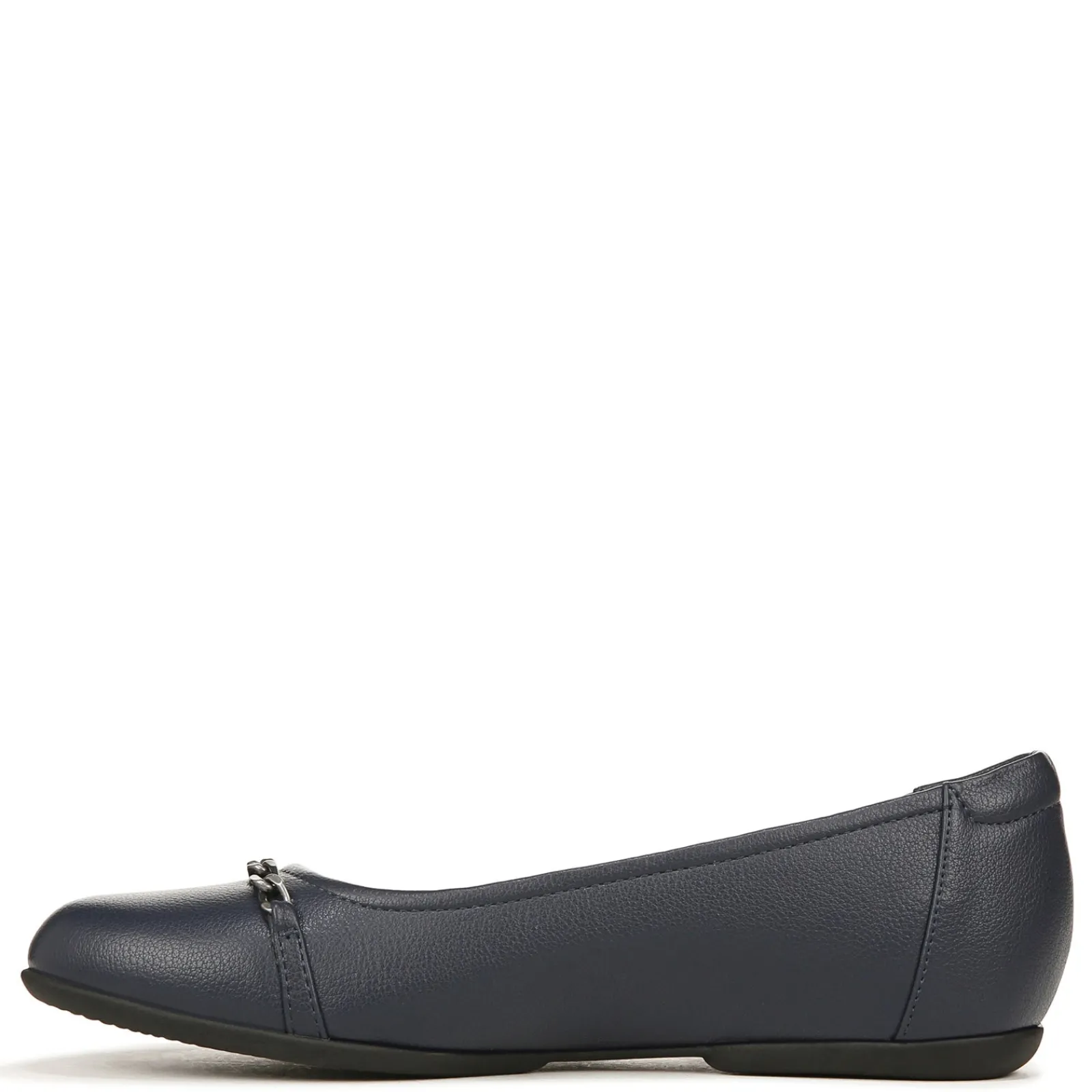 These faux leather ballet flats offer a feminine look that’s comfortable enough to wear all day. With an elegant chain trim and cushioned memory foam footbed, this versatile style features sleek modern lines and sophisticated style paired with total comfort Smooth manmade uppers featuring chain accent for added appeal Slip on style for an easy on and off Fabric linings All Thru Comfort padded memory foam footbed with arch support for added comfort Manmade outsole