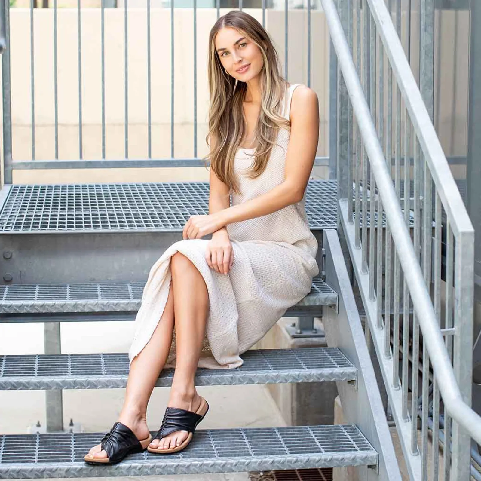 - Thong style sandal for an easy on and off