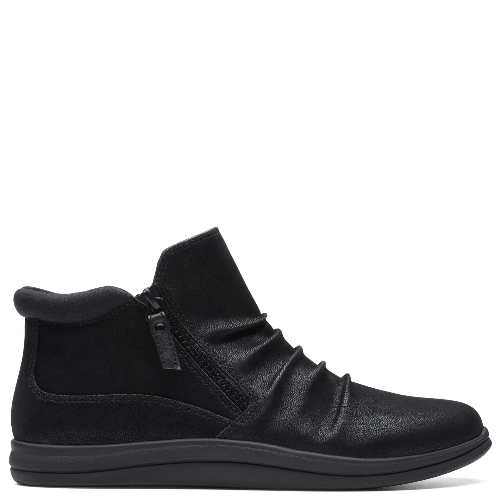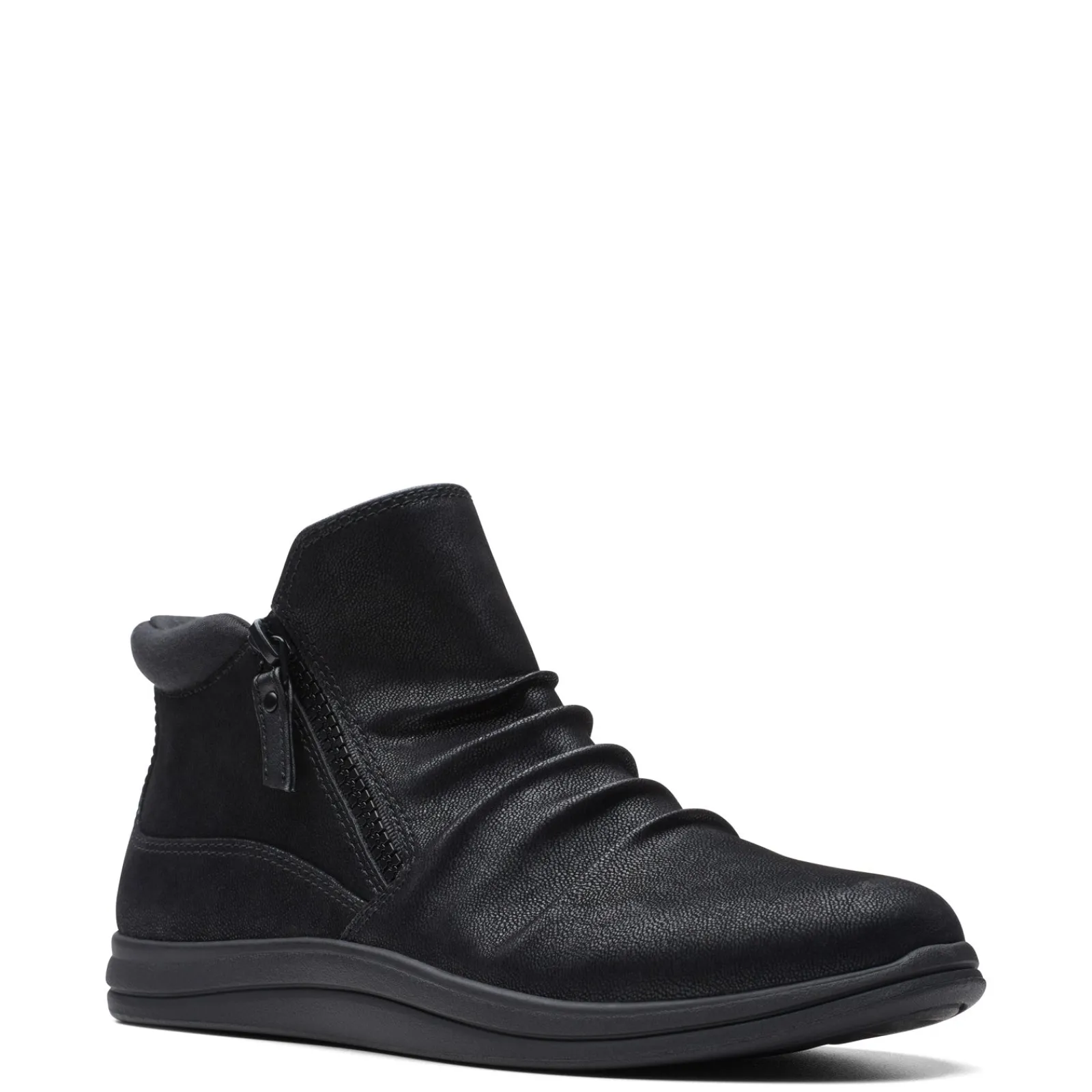 Take your style to the next level with the Clarks Breeze Range booties! Crafted from premium fabric and featuring side stretch details, this shote boot is sure to be your next favorite wardrobe staple Fabric upper in a pleated design with stretch panels for flexible comfort Side zipper closure for easy on and off Removable Cushion Soft footbed delivers superior comfort Soft terrycloth lining Durable, slip-resistant TR sole Part of the Cloudsteppers Collection