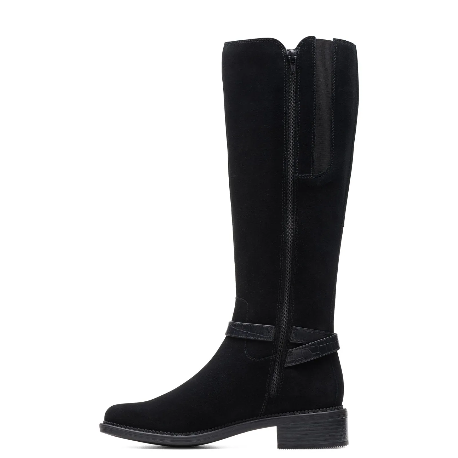 - Suede uppers featuring decorative strap accent