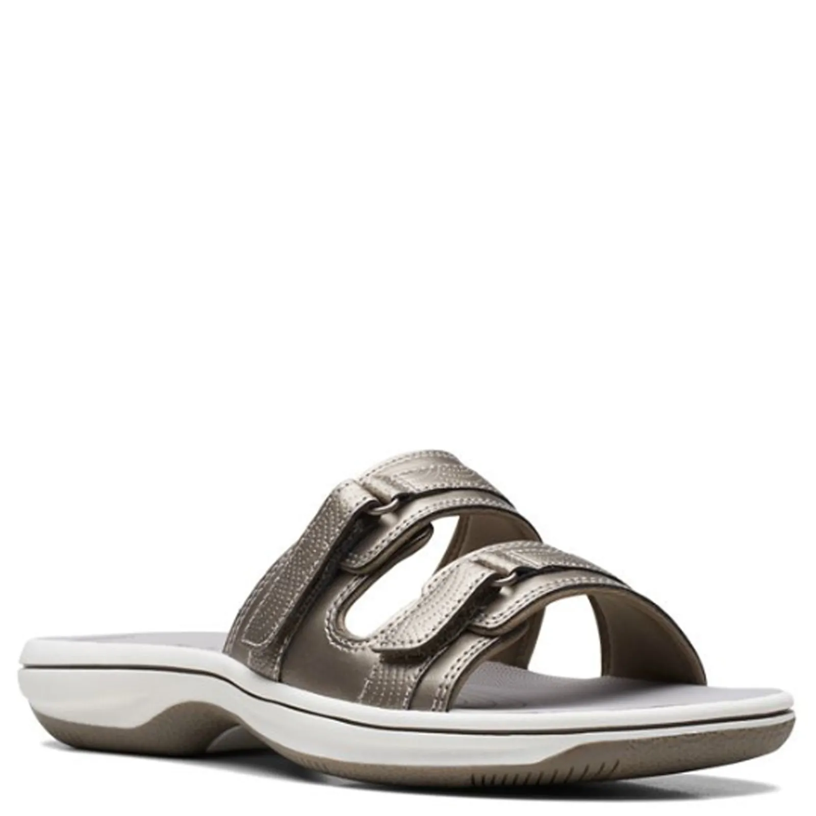 Women’s Clarks, Breeze Piper Sandal. Casual and comfy, these slides are perfect for warm weather fashions. With a fully adjustable upper, you can customize the fit of these lightweight slides.