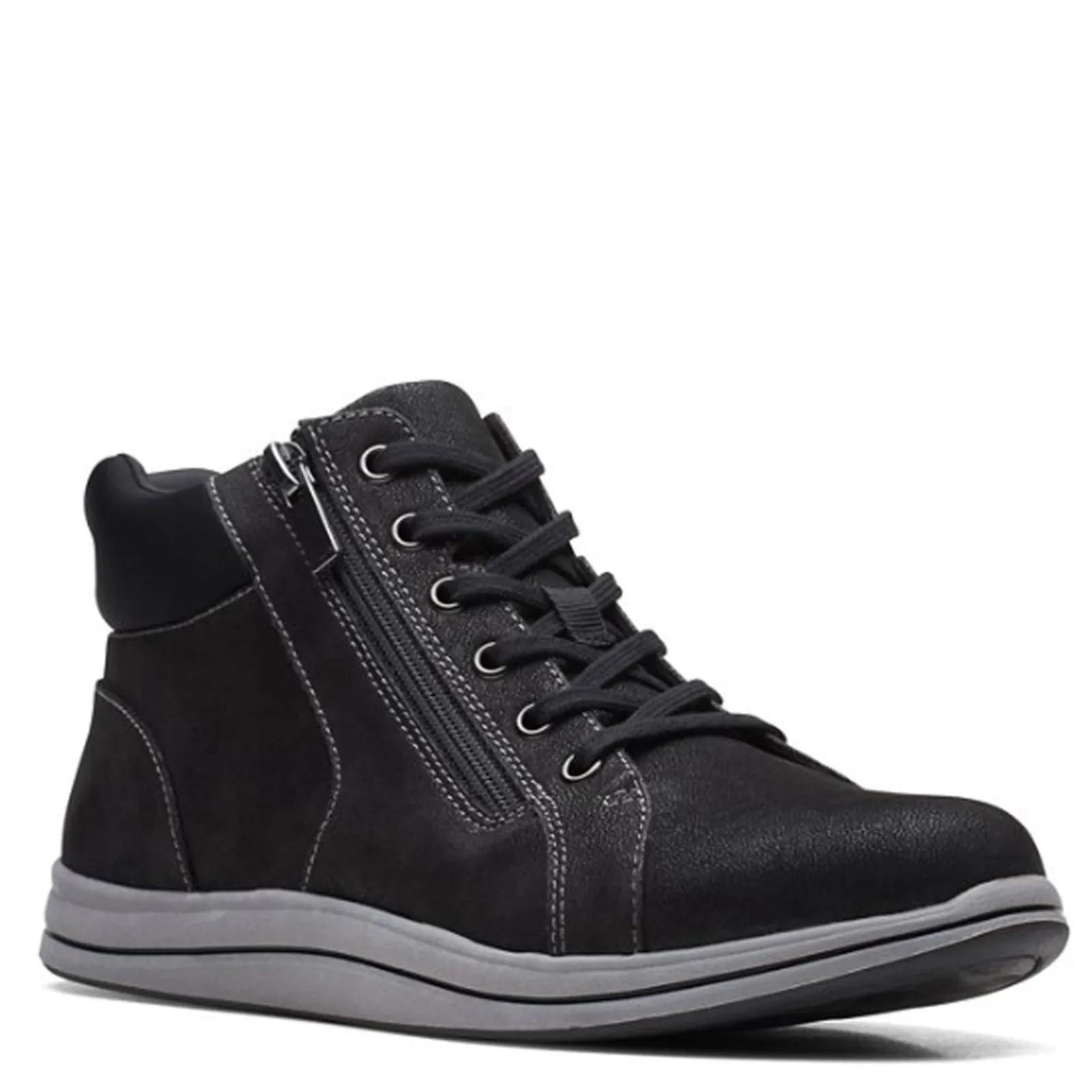 Women’s Clarks, Breeze Glide Sneaker. Take your style to the next level with the Clarks Glide Sneaker! Crafted from premium faux leather and fabric and featuring a laced front panel, this sneaker is sure to be your next favorite wardrobe staple.
