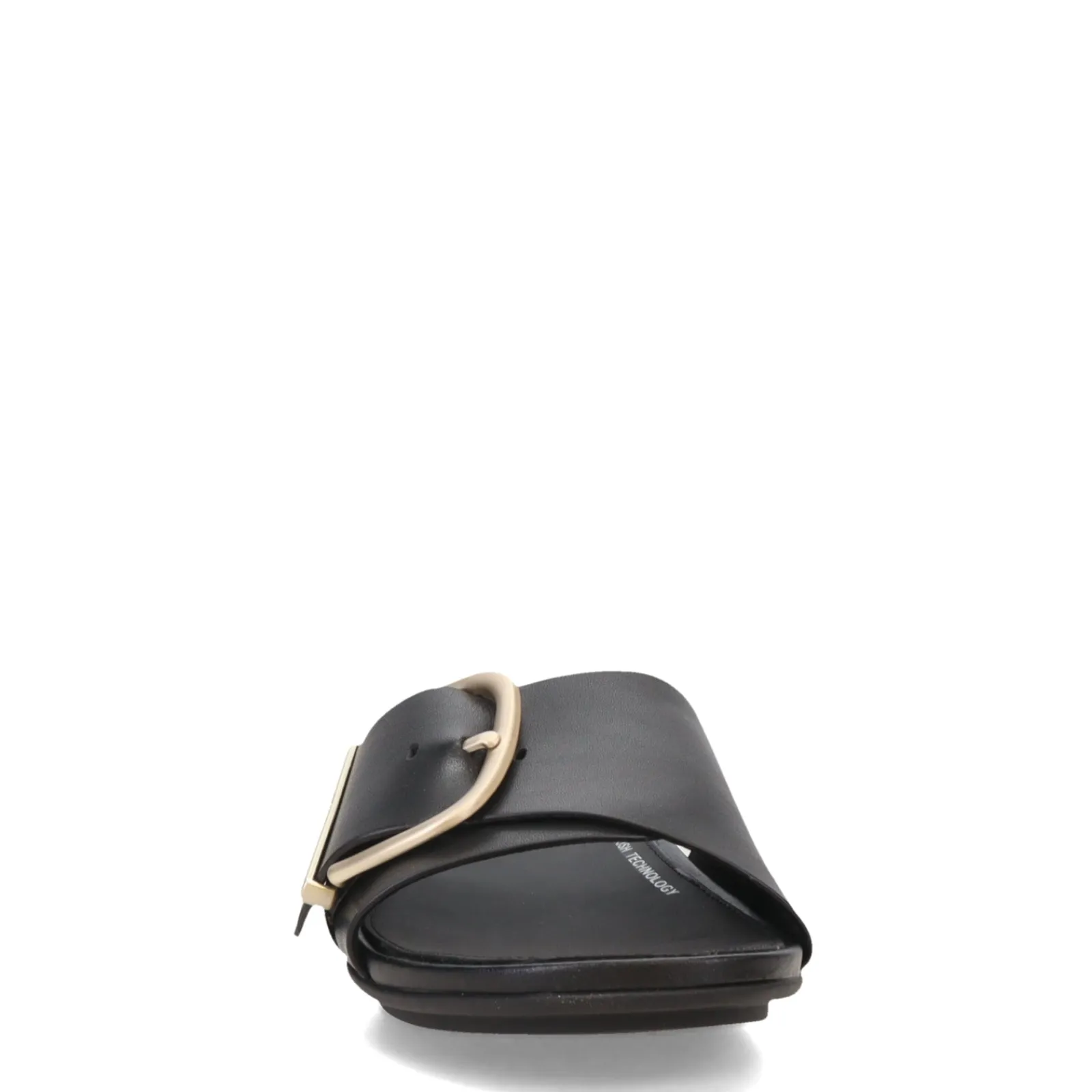 - Leather upper with oversized buckle