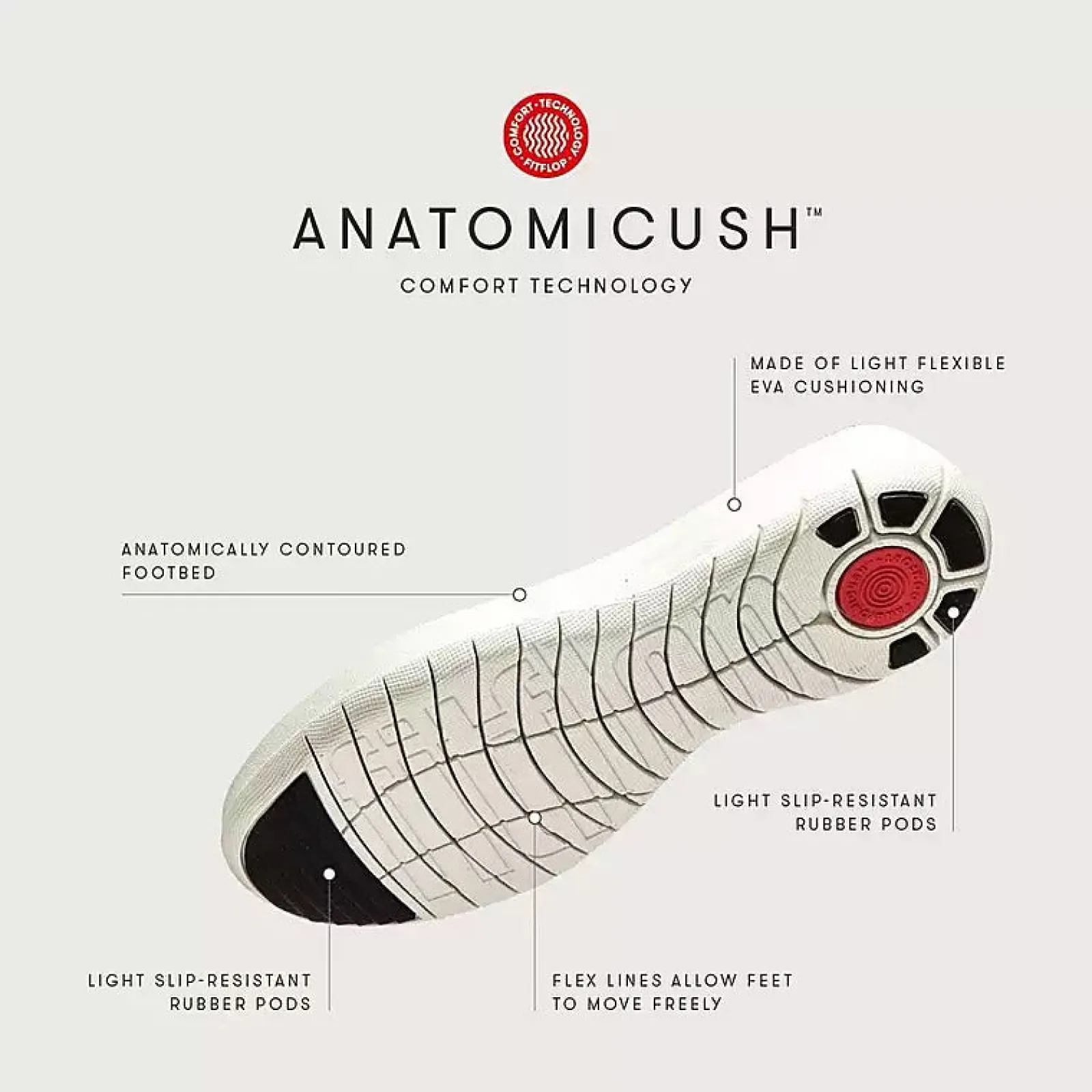 - Anatomicush midsoles, with flex lines for a comfortable feel