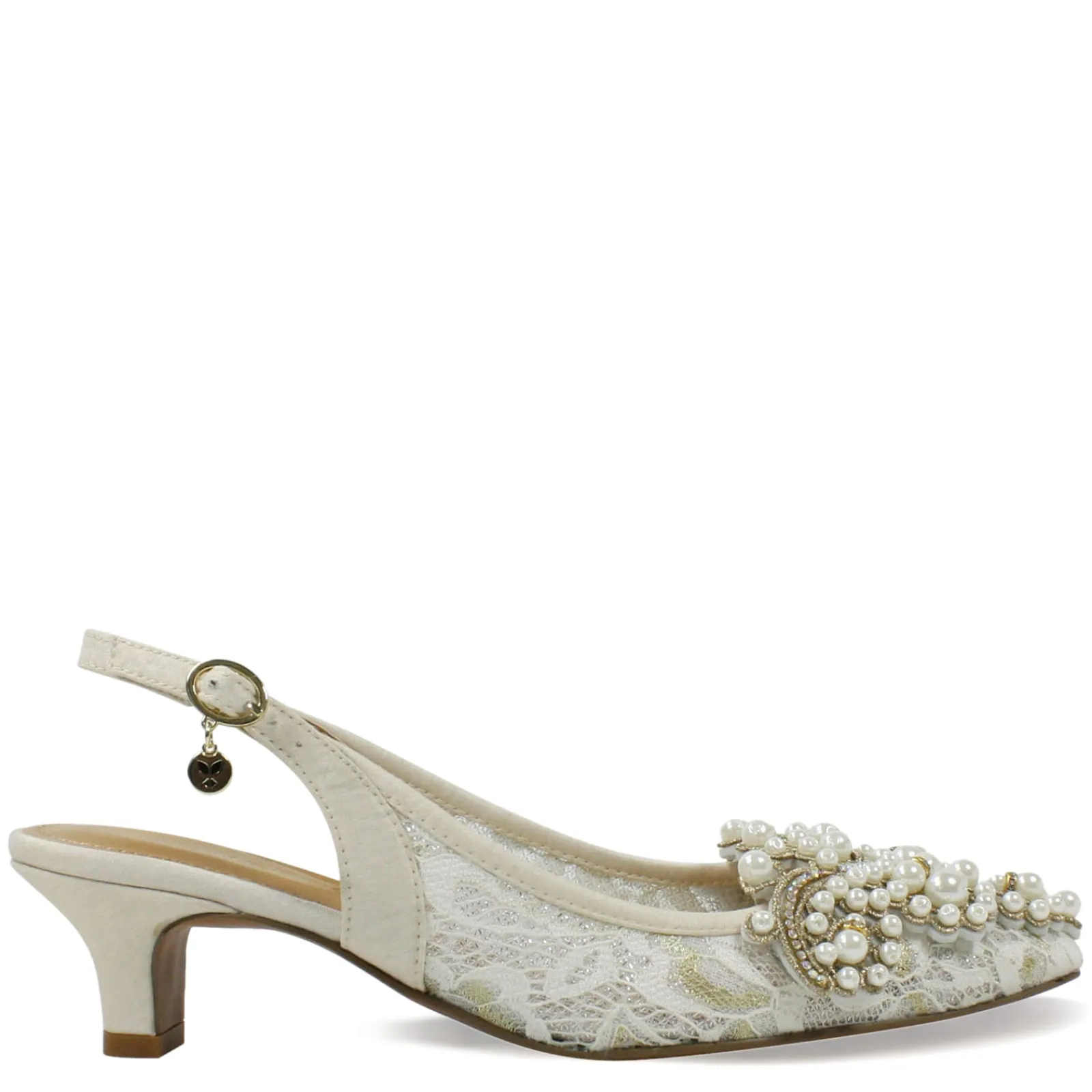 Women’s J Renee, Strovanni Pump. Keep your dressy look dazzling in this low heel fabric and beaded pointed toe pump style. Perfect for weddings, special events or parties, this beautiful style will complete your look.