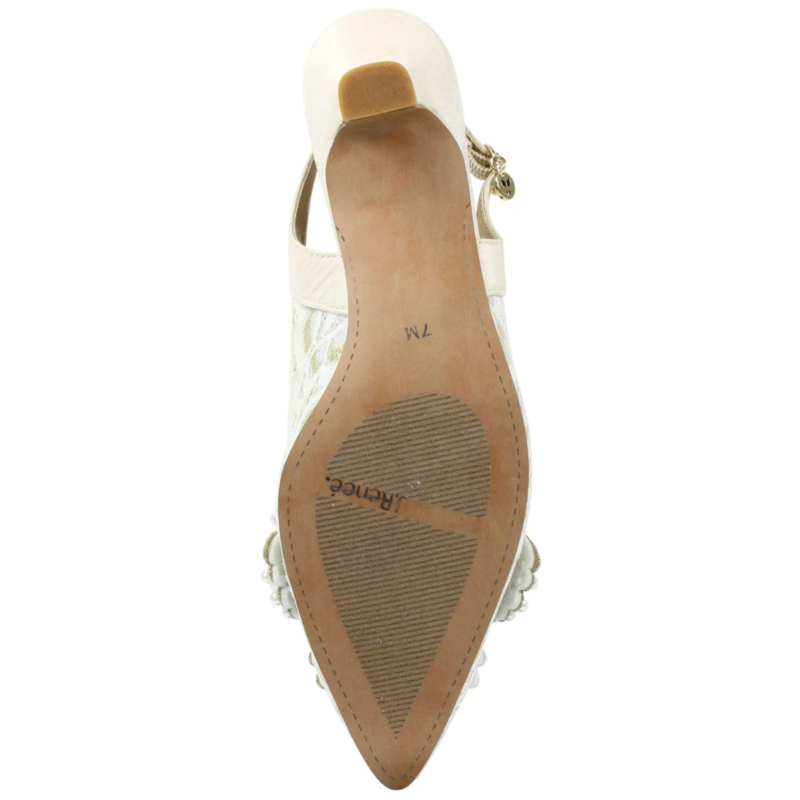 - Mesh and fabric upper with beaded accents