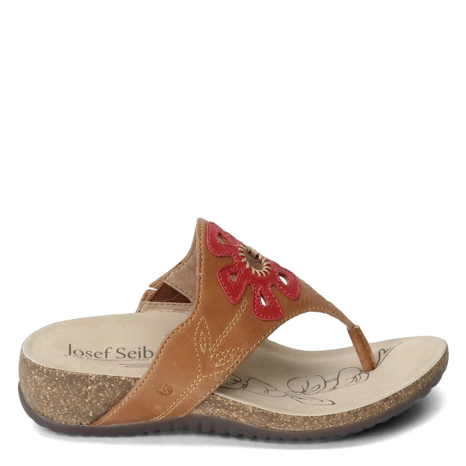 Women’s Josef Seibel, Natalya 09 Sandal. This foot flattering thong sandal has a cheerful floral design upper. Be prepared for smiles and compliments when you wear this low heel style.