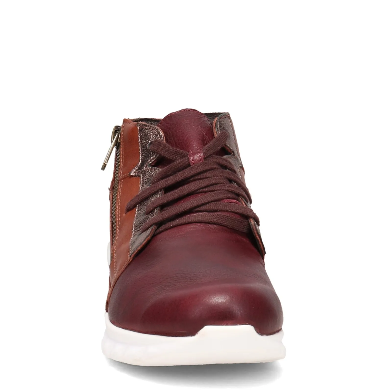 - Lace-up closure with angled zipper