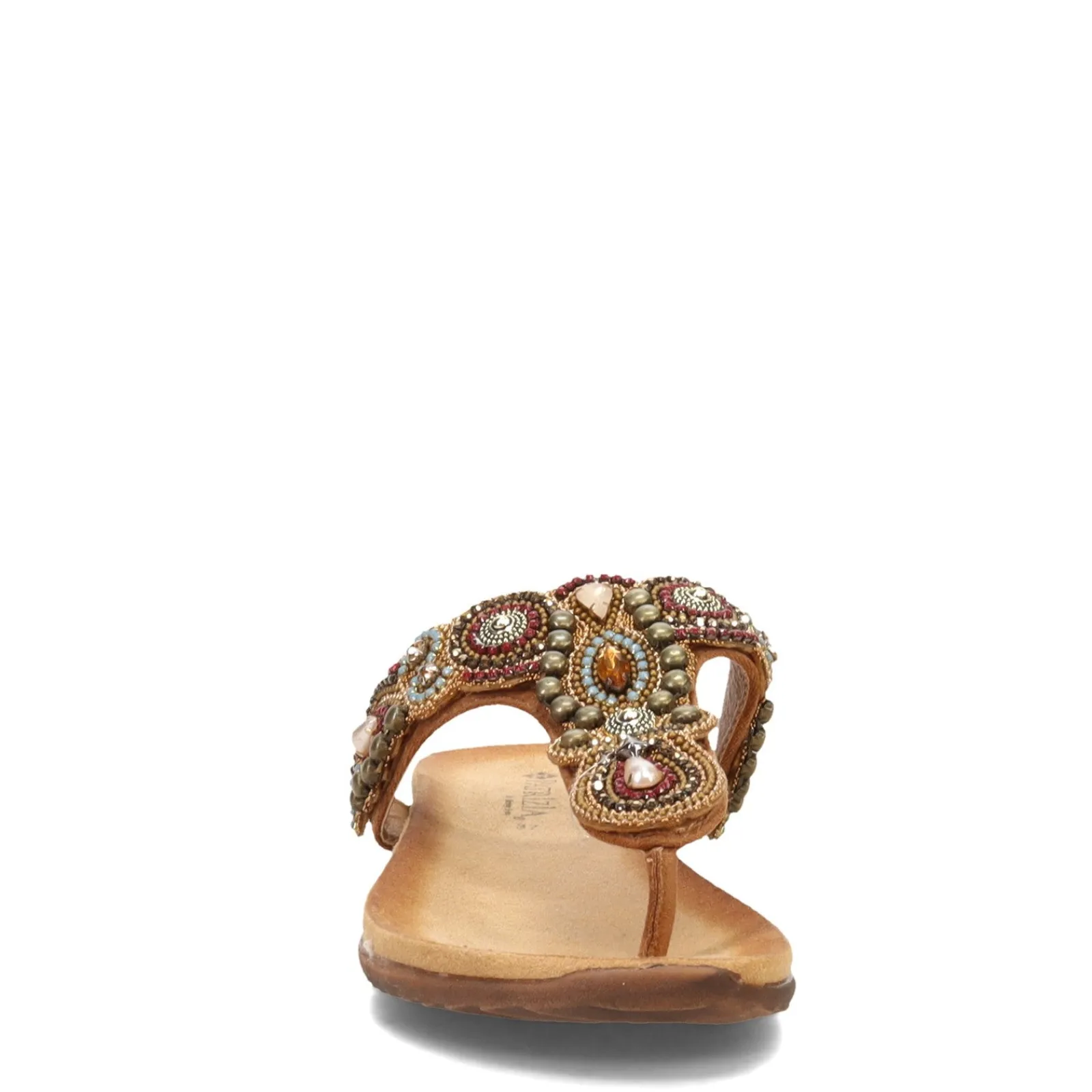 Women’s Patrizia, Fiesole Sandal. Welcome the warm weather with style in this embellished thong sandal from Patrizia. The Fiesole Thong Sandals feature rhinestone and beaded embellishments for a dazzling look. These sandals have a soft footbed and flexible sole for comfort and ease.