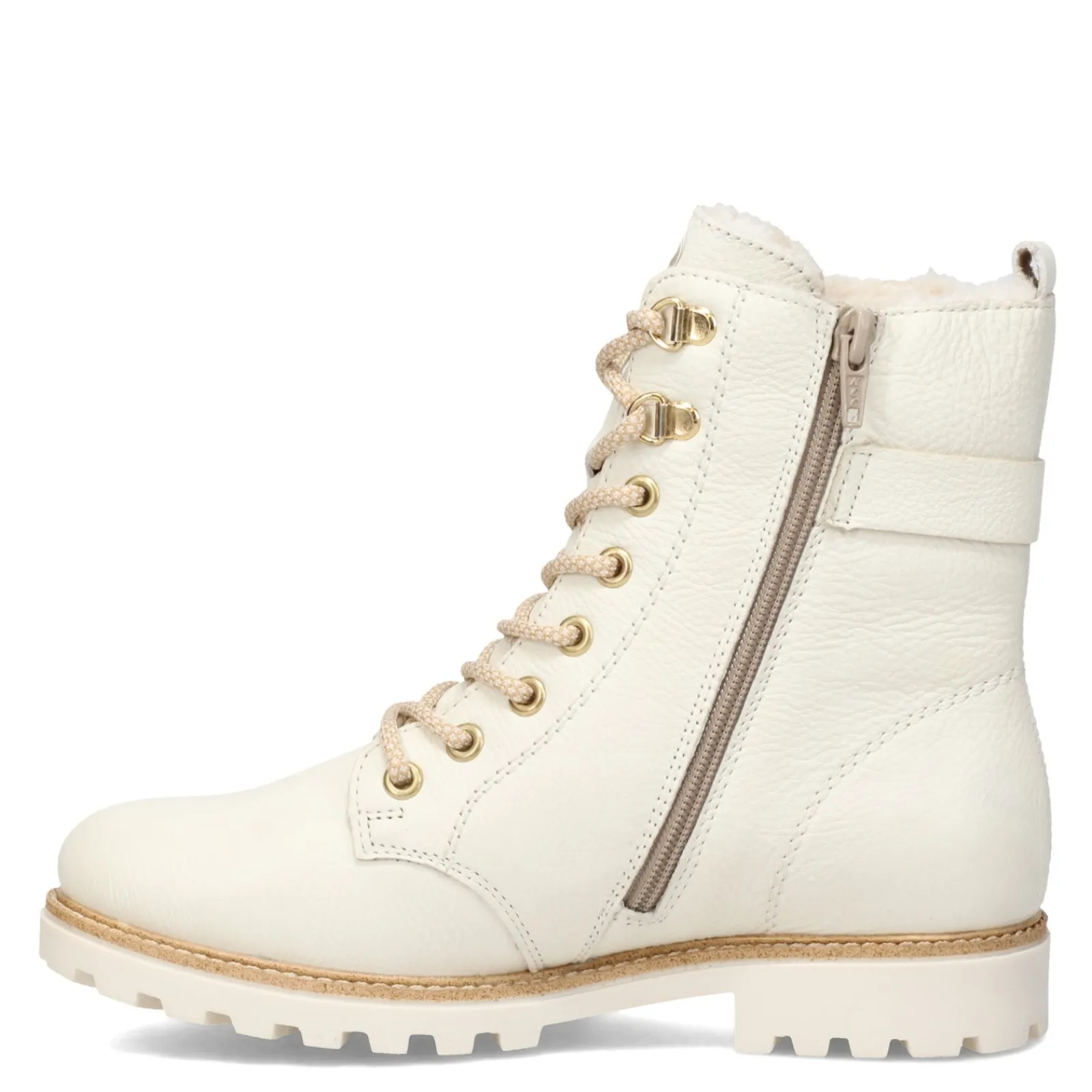 Women’s Remonte, Samira Boot. Classic style meets sophisticated details in Remonte’s Samira boot. Crafted with a cozy wool lining, water resistant upper and lug soles, it’s the perfect bootie to transition from day to evening. With its lace up front, functional side zipper, and gold metallic details, it is a classy alternative to the combat boots that are everywhere this season.