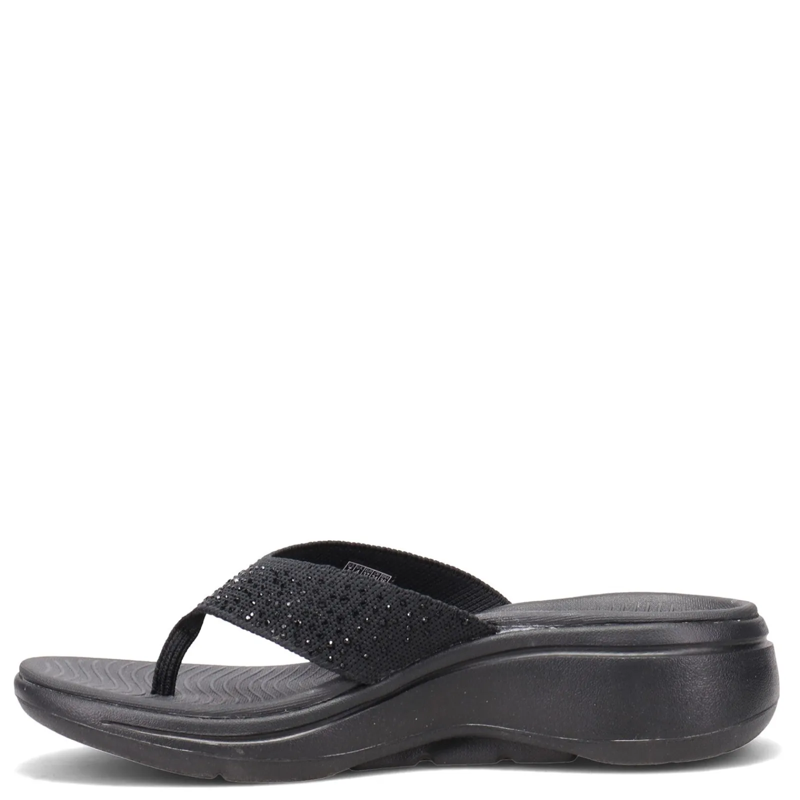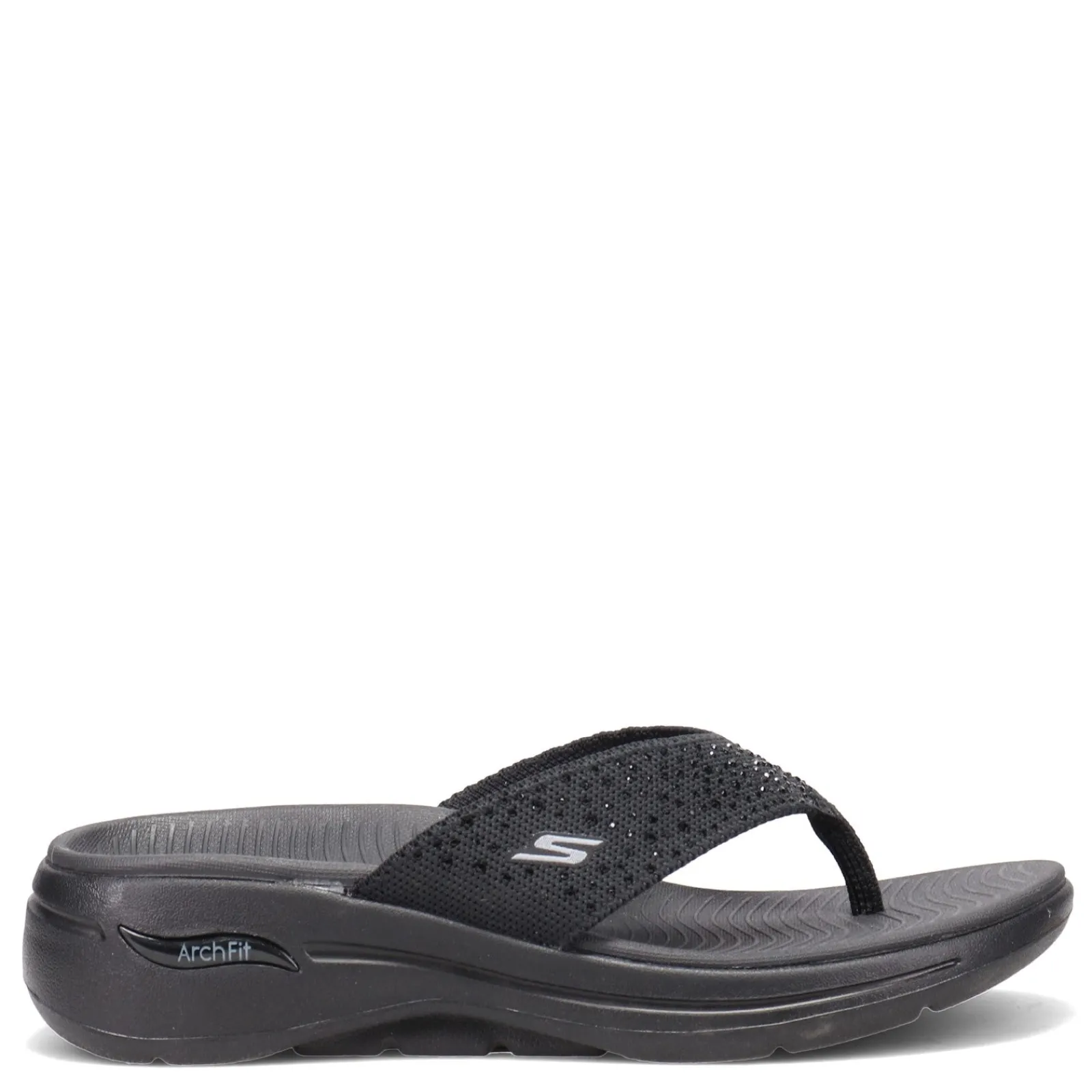 Women’s Skechers, GOwalk Arch Fit – Dazzle Sandal. A sparkly thong sandal style, with a stretch fit fabric upper, that will keep your feet cool and comfortable all day! You’ll enjoy the cushioned comfort of the highly responsive ULTRA GO midsole and the patented Skechers Arch Fit insole system with podiatrist-certified arch support.