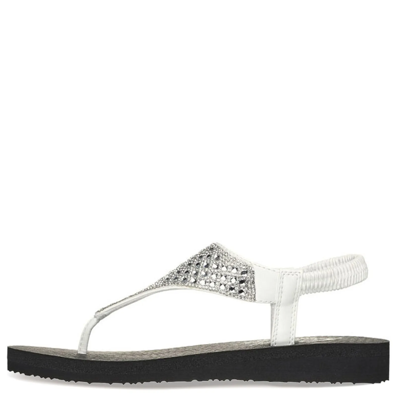 - Vegan rhinestone embellished synthetic upper in a comfortable thong sandal design