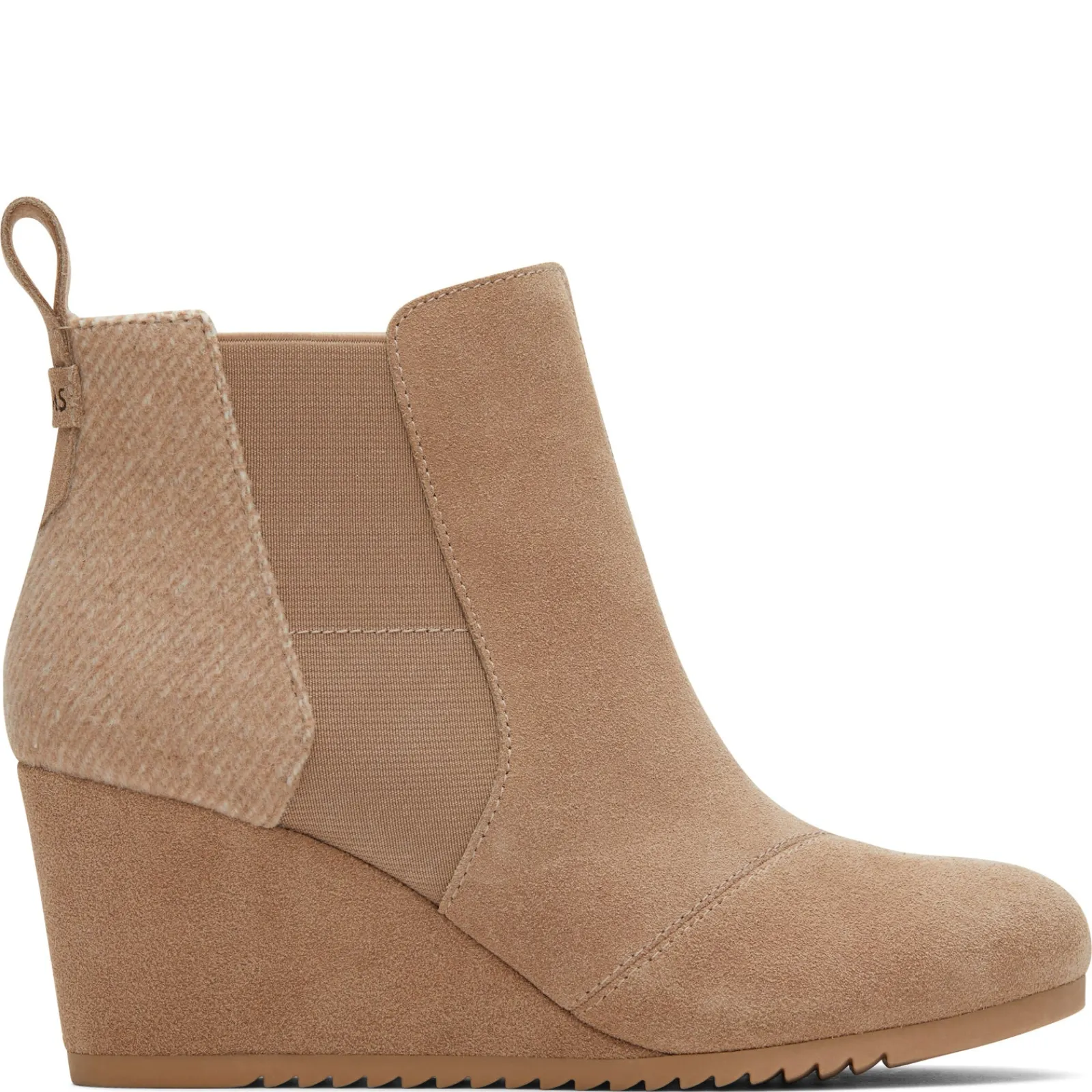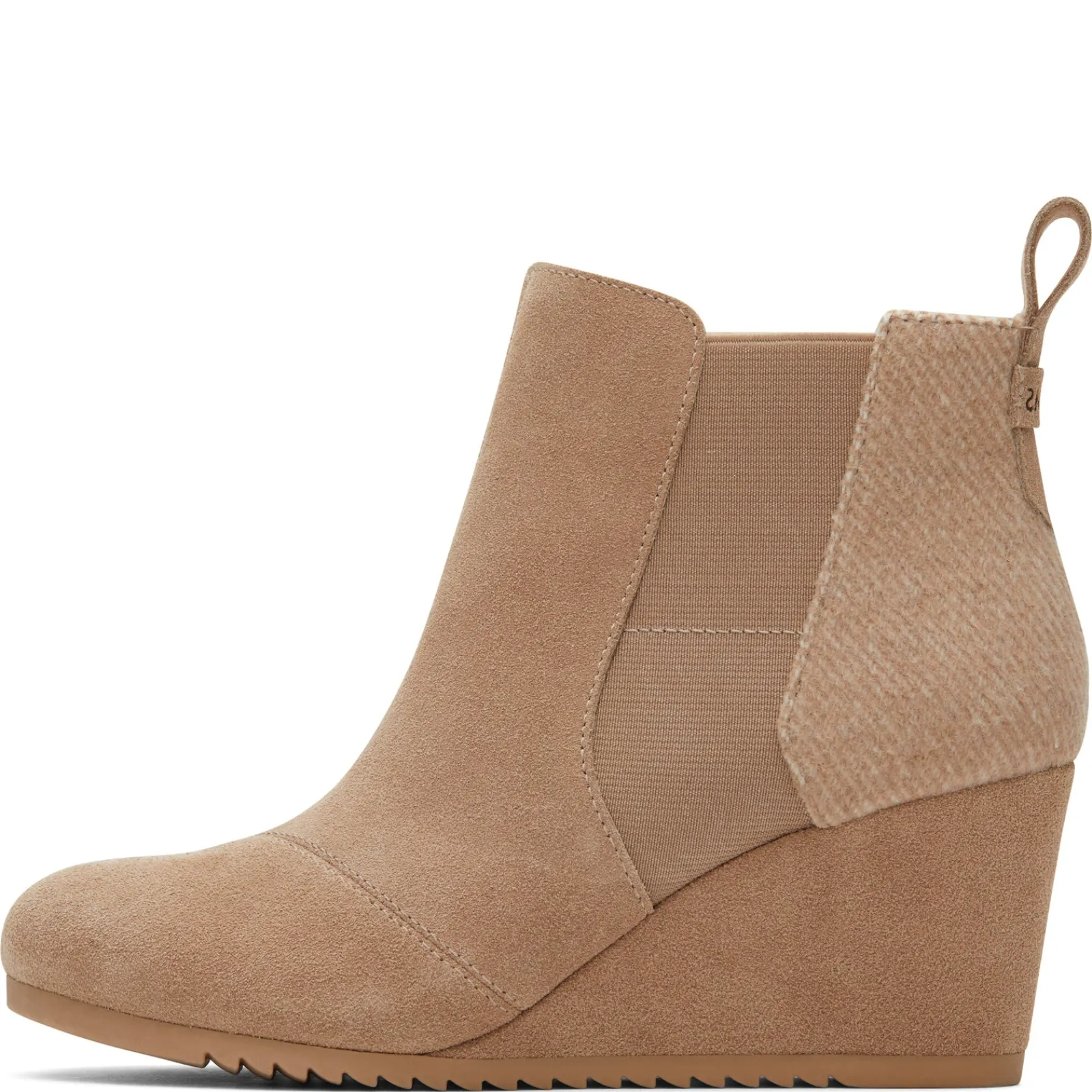 The TOMS Emery Wedge Boot is a classic wedge bootie that’s perfect for fall adventures. This bootie is made from quality suede and wool, with a round toe and easy pull-on design. The footbed offers cushioned comfort, while the sole adds traction Suede and wool upper with breathable lining Dual gore stretch panels and pull tab at heel for easy on and off Approx. 4″ shaft height Approx. 8″ leg opening 2.75″ wedge heel Synthetic sawtooth sole