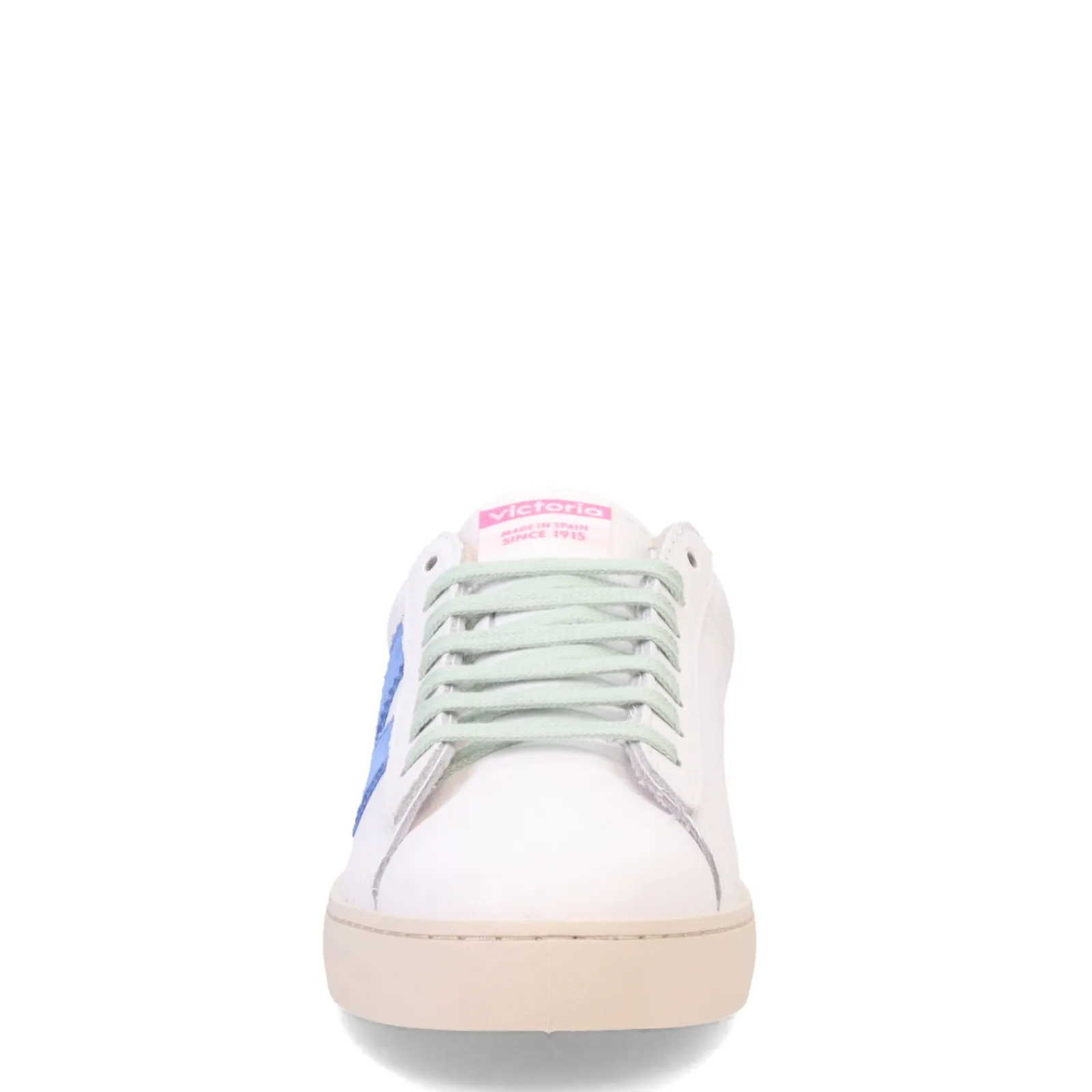 Introducing the Victoria Berlin Sneakers, crafted in Spain with a commitment to sustainability and style. With a sleek white leather design accented by neon and multi-colored details, these trainers offer both fashion-forward flair and eco-conscious construction, including a vegetable oil-based sole and recycled material insoles for optimal comfort